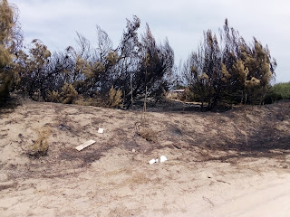 It took about 7 hours of sirens, smoke, ash falling onto my patio, and the smell of burning wood, before the fire was out. This afternoon, two days later, the forest is still smoldering in spots. It burned in spots right up to the beach club I go to, Lido Ritz. I didn’t walk all the way down the beach road, but could see the charred area in the distance. Really creepy, and it wasn’t just our town. Termoli and Pescara, two of the bigger towns north of us, were also experiencing fires, as were a few other towns. The rumor mill around here is that some group of people started a bunch of fires for some reason. No one can give a reason. That night, Zia said to me something about the sirens and how we thought someone was having an emergency and how wrong we were. The whole area was having an emergency.