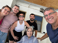 I finally had some pizza last night, my first cheese pizza since I got here. I had only had breakfast focaccia pizza. Yesterday was Zia's birthday and also her saint's day. My cousin Luigi's wife is also named Carmela so he threw a party in her honor at his place here in town last night. Even met his son Leonardo for the first time. It was a great time, and it's amazing how much I'm understanding this year. Sometimes I'm even thinking in my broken Italian. I got back to my place at almost 12:30 last night, which kind of setup an odd morning.My neighbors were out yesterday afternoon when I left for my cousin Luigi's house on foot. And when I came home, they had already gone to bed. I put my sleep mask over my eyes when I went to bed to block out any light in the morning, and slept until about 8:30. I didn't get moving quickly and about 9:30 Zia calls me to find out where I am. Then my doorbell started ringing. Evidently my neighbors were concerned since they hadn't seen me since yesterday morning so they rang my doorbell and called Zia, and she called me. At that point I was about to hang up some laundry and head out on my walk. At least I know my neighbors are looking out for me, just need to be up before 8:30 I guess.