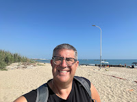 I've spent my days walking, reading (one book "Blood and Honor" done), writing a screenplay (30 pages drafted), cooking, and getting to the beach for a few hours a day. Italy is going through a heatwave, with temps in the 90s most days, and today, though only 88 degrees, had a heat index of 111. Very humid day. Even the water was warm today.